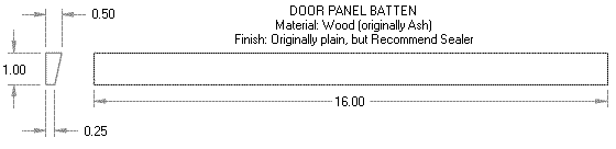 There is a wood batten strip behind the top edge of the MGA inner door panel. The wood strip is tapered to space the top of the panel inward at an angle to meet flush at the inside top edge of the door skin. If you buy a commercial door panel kit this wood strip should come attached to the back of the door panel as it was for factory original parts. If your car may be missing this part, or if you intend to make your own boor panels, you may need to make these wood strips. It is a simple part to make.