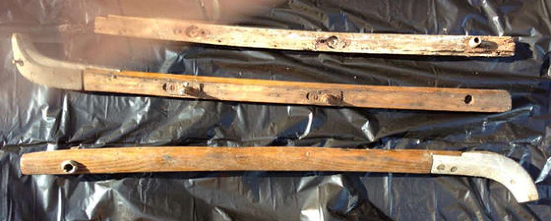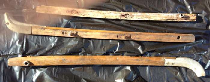 "I looked harder and have found another set of rails that is in excellent condition which will make great pattern pieces. I will get some paper to trace the outlines and profiles in all dimensions and will post new and improved pictures in the next couple of days. Meanwhile, a teaser shot (that didn't work very well) of the rail previously pictured and the better set".