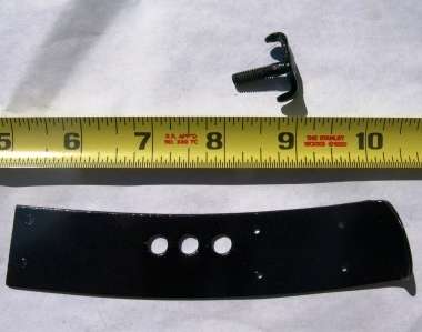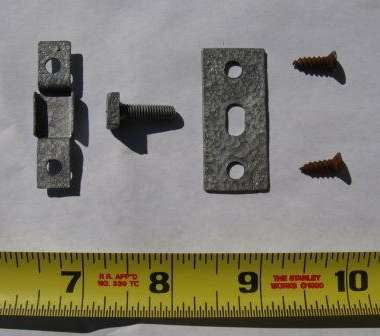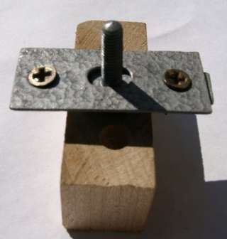 "Here is a front cockpit rail stud and the metal end piece (below). It was attached by small tacks - driven through the plywood piece and bent over to be clenched flush along the other side".