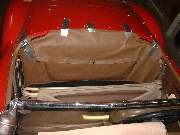 This time around I elected to omit the LTD fasteners on the sides, simply because I never use them. I could never get the top frame pushed back far enough to allow attachment of the LTD fasteners to the side studs. This may have to do with using a spare tire one size larger than original, which may hold the folded top slightly higher and/or farther forward than original as delivered from the factory.