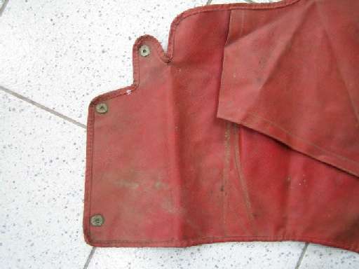 Photos below left and center show configuration of the later style bag with the third LTD fastener on each side. This style bag was originally intended to sit on top of the battery cover rather than in front of it, and would coincide with the later style folding top frame that stows a little farther back.