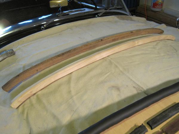 "I made my own rails. I made a template out of thin plywood. I clamped the plywood to the rear cockpit sheet metal and traced the contour, top and bottom, onto the wood. The template was used to cut the new rail from poplar. I used a router to round over the edge and sanding to make it pretty.