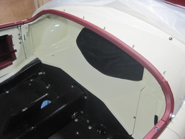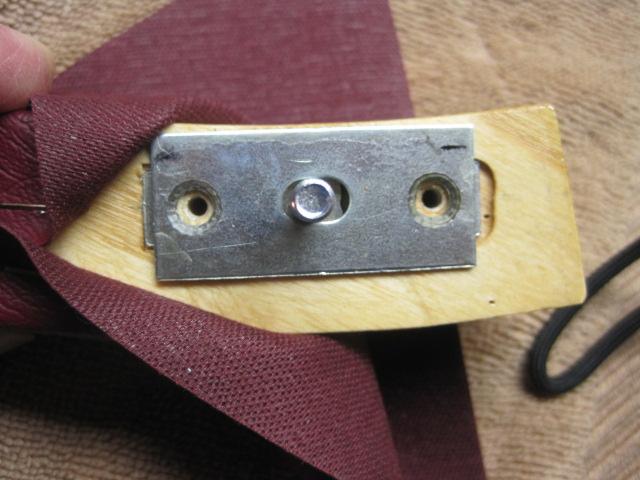 The rear piece was pretty straight forward as I cut it with my scroll saw out of 3/4" material, after first making a cardboard pattern shaped to the curve of the bodywork. Rounding the top edge was done with a router. I then marked the attachment screw locations, routed recesses on the backside for the attachment hardware, and installed that. The screw plates came right to the edge of the wood, so I ground down that edge of the screw plate so I would have room there to staple the vinyl.