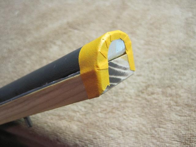 I filed the metal ends of the front piece to remove any sharp edges and also wrapped with masking tape.