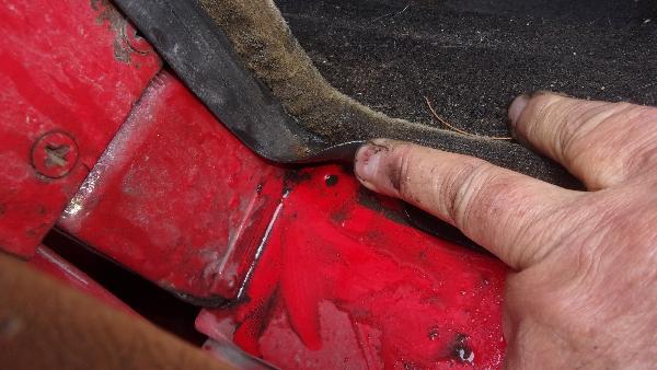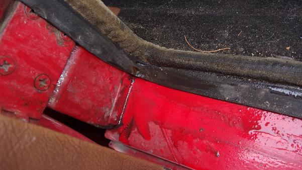Someone asked about the purpose of a hole in the top front of the rocker panels near the inboard flange. By coincidence it happened to be a rainy day when it was appropriate to take these pictures.