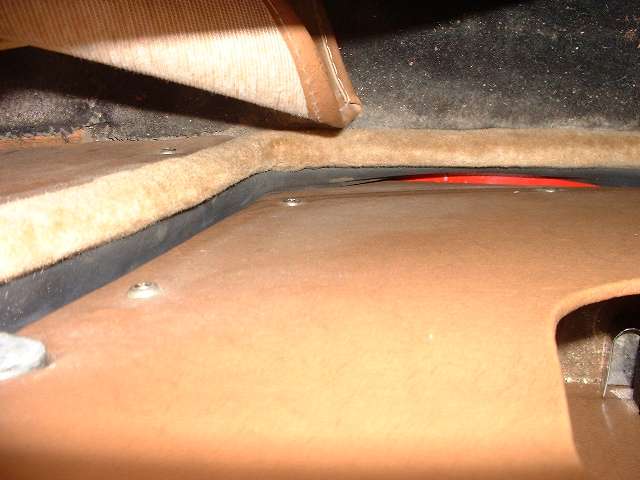Now here is the real pay-off for this effort. Pictures below show an inside view of the door looking down at the seal at the bottom rear of the inner panel. The picture at left is with the door on the first position of the safety latch, not completely closed. The picture at right is with the door fully closed and latched.