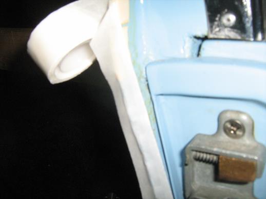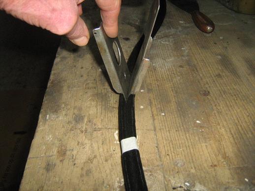 The Ramsey sponge seal is opened out and applied progressively to the dots, pressing down firmly on the top and each side. It goes on easily and with no mess. The sponge seal was secured with bulldog clips and the join under the weight on the sill was butted together with contact adhesive with a splint of sponge inside the seal cavity.