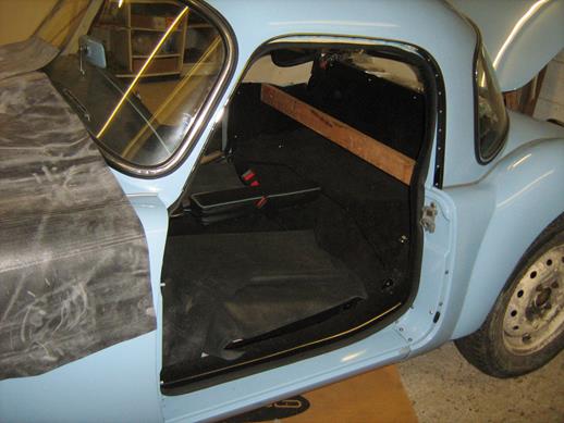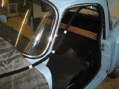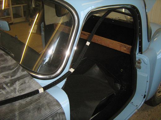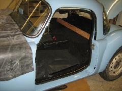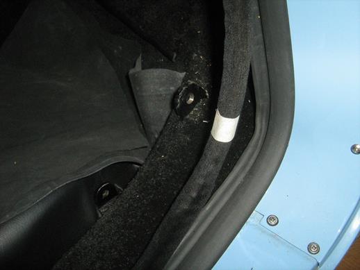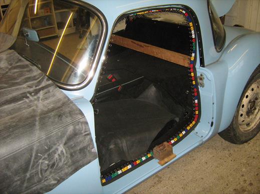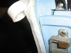 I started the outer seal on the sill seam at the front corner of the door and worked along the sill and around the door, pressing down and crimping the teeth of the spine into the foam, as the picture in INT-108B.