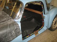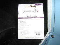For my Coupe, I bought 12mm square glue dots which come already stuck to a paper backing tape in a pack. The glue dots are at 20mm centers. One pack just does one door. I thought about using contact adhesive but decided that this would be too messy and prone to disaster. I stuck the dots centrally over the steel seam that supports the seals, cautiously in sections on the first door but found it was better to do it as a continuous strip on the second door. Pressed down firmly through the paper they stuck tight, and I peeled the paper back parallel to the seam so there was less tendency for the dots to come off with the paper.