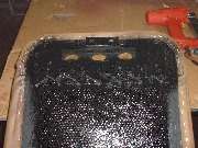 In preparation for installation, the seat base board and screen will be already assembled. The foam cushion should be molded to fit the base board perfectly, with mirror image cushions for left and right seats (angled on the side next to the tunnel). If you have new cushions that are identical "one size fits all", then you need to trim the perimeter of the cushion to match the shape of the seat base.