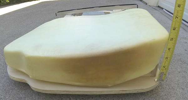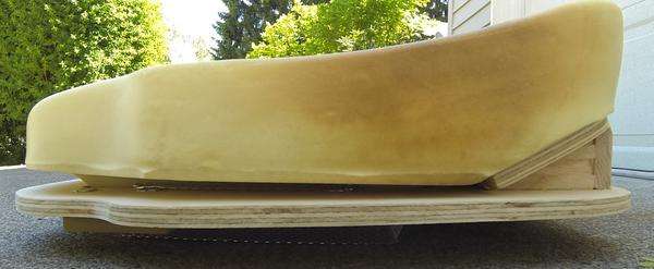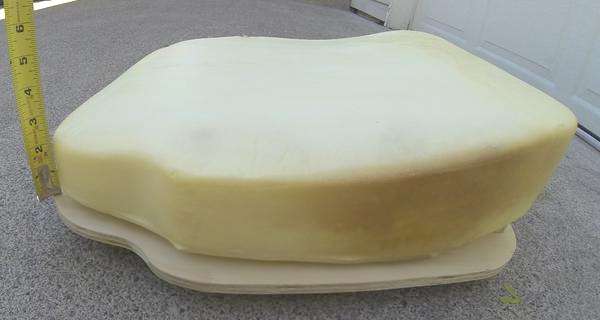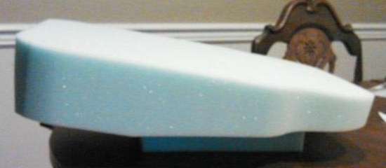 An electric carving knife works well for trimming the foam rubber. Follow the contour of the plywood base board all around (or 1/4 inch larger) with a slight forward lean at the front.