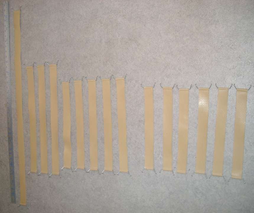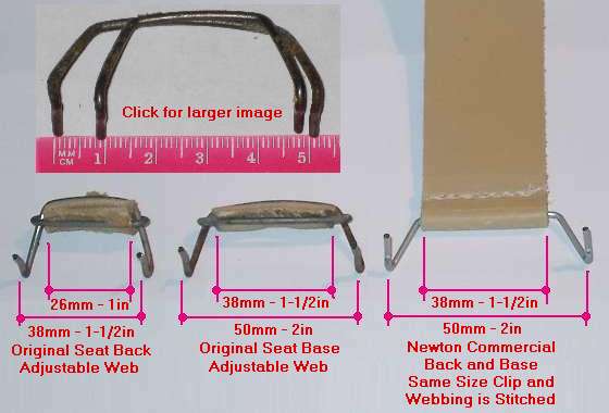 Original seats used two webbing sizes with wire clips of different sizes to suit.