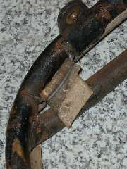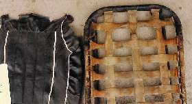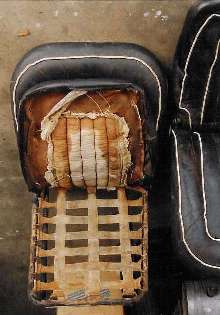 Pictures of these tatty original MGA "Competition De-luxe" seats speak volumes about internal construction and assembly. Thanks to Tom Tallone for donating those pictures. Click for larger images.