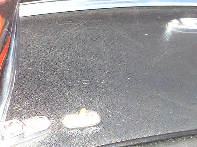 That leaves two edges that will be exposed at the sides when the doors are open. I haven't taken a good look at original cars, but I suspect the vinyl material here should be extended down the side to be wrapped around and upward behind the sheet metal. Otherwise you might consider a very clean razor cut edge stopping on the top surface very close to the edge. Keep in mind that the vinyl will be glued in place, but it could be subject to a little shrinkage with time, so an exposed edge might shrink back or peel up. I don't like the idea of an exposed unfinished edge.