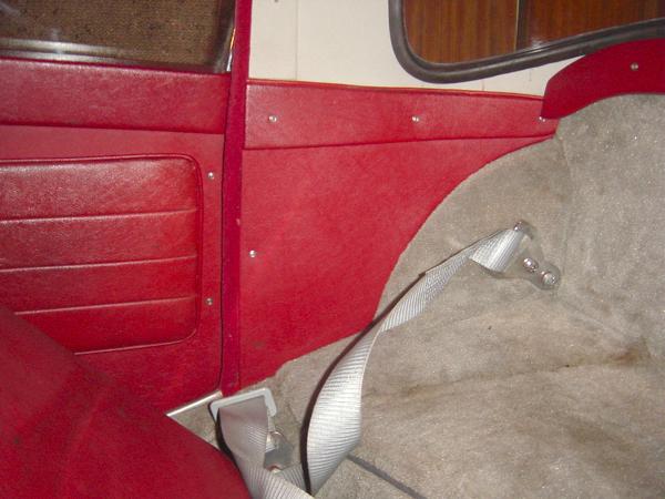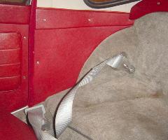 Retractor reel in this position may interfere with stowing the rag top on the roadster, or the stowed rag top may intefere with routing of the shoulder belt.