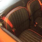 Nevertheless, with the excellent help of Mike and Graham at Mike Entwisles MG Workshop (www.mgworkshop.net), I feel that the finished job is first class and I am very pleased with it. I purchased the belts and the fittings from Quickfit Seat Belt services (www.quickfitsbs.com). The product supplied is first class, and came complete with all the required fixings and bracketry. Quickfit offer all types of belts and buckles for most classic cars, in a wide variety of colors. His photos illustrate that (1) you can just about see the gap between the tonneau panel and the top of the bulkhead panel, (2) the belt comes through the tonneau rather than under it and (3) there is a small slot in the tonneau about the width of the belt webbing with a flap to cover that slot when the tonneau is "closed" and the belt is in the car. The extra strip of leatherette is to clip the buckle to when not in use so it cannot get pulled back into the boot.