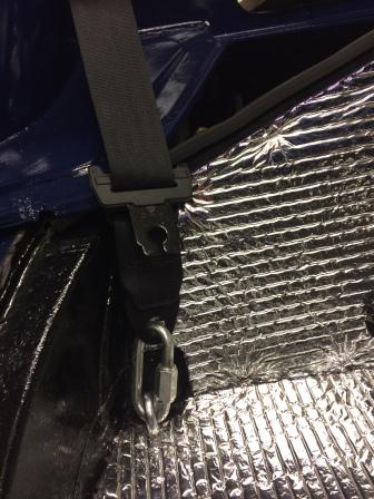 As with other methods I’ve seen, the means of overcoming the need to be able to raise and lower the roof is to fit a removable link in the outboard belt anchor point. In my case, I’ve used a sturdy removable link.