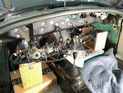 - Offer the dash up to the body and install three screws (large flat washers and lock washers) to attach the dash to the body. One of these screws may be above one of the large instruments with difficult access, so you may find it convenient to remove the instrument mounting bracket and push the instrument out of the dash while installing this screw. When reinstalling the instrument be sure to attach any black grounding wires to the bracket. DT-141