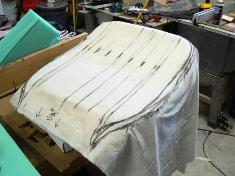 Laying out the new pattern - Kind of a check on the correctness of the old original seat cover - might have stretched or shrunk