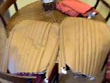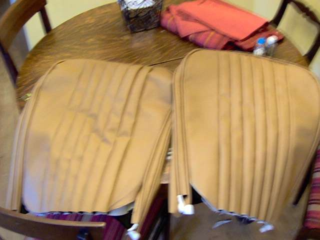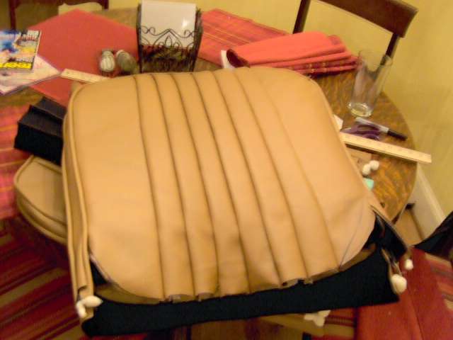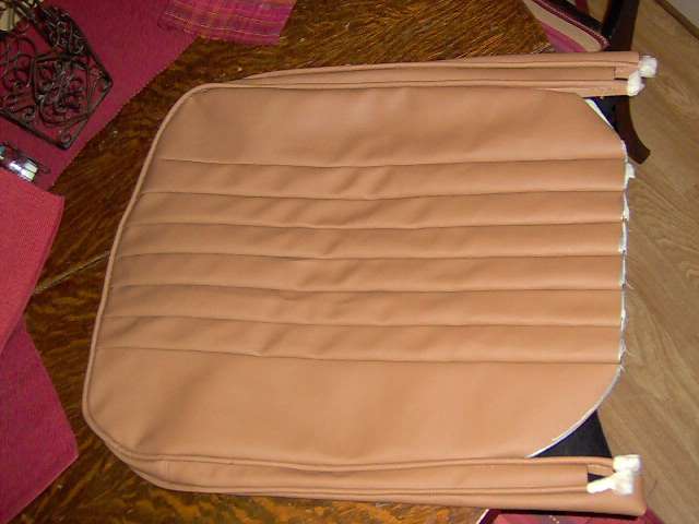 finished sewing on seatback. The pleats should probably have been 2.5" each to match the original early MGA's - looking at some pics it seems my outsides are a bit too wide...? Looks OK though. |