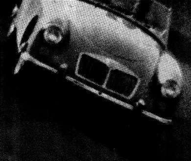 We had occasion to be thankful for all this stopping power at one point in the test trip. Happily cruising along the Indiana Tollroad just at dusk one day we were startled to see a large, brown shape bound out from the ditched center island onto the roadway directly into the path of the MG. It was a large mule deer and not more than thirty feet away when it decided to leap. We hit the brakes, hard, and cut tot eh left. In an ordinary car or one with inadequate brakes we would have would up with a large amount of venison in the cockpit by way of the hood and windshield. As it was the deer clobbered the right headlight with a hind hoof and that was all. The state of Indiana had a sore footed deer and we replaced a sealed beam headlamp at the next service pavilion and were on our way after reporting the incident to an amused Trooper.