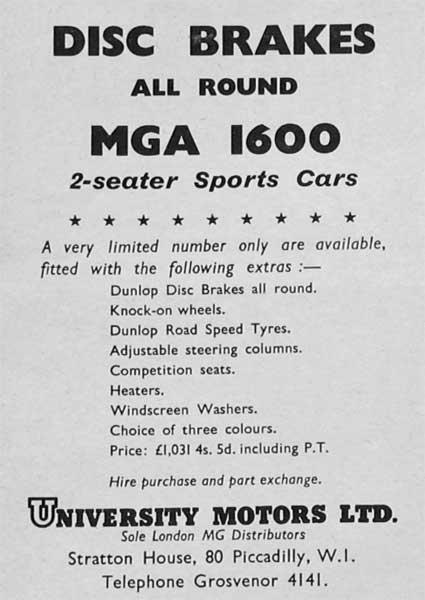 Disc Brakes All Round MGA 1600