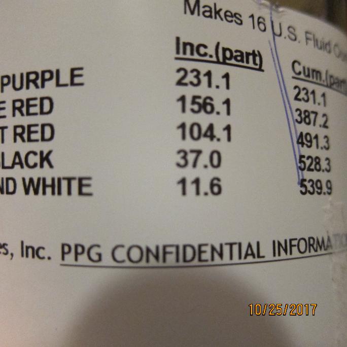 "I'm pretty tight with my PPG paint store here in Montgomery, AL. After reading about engine colors for MGAs on you site I decided to do a little more research. I gave them the DQE 50782Y number that you listed on your site and asked them if they could match it in a one of their current PPG paint lines. As I'm sure you know PPG bought Ditzler years ago. They called their archives department in Ohio and came up with a formula in their Delfleet Essential line. I have attached pictures of the label and the mixing colors and weights used to get the color. The problem here is the cost of the paint. It's $49 a pint, and that doesn't include hardener and catalysis. I'm going to spray a test card this color and see if my Rust-Oleum industrial store can match it for me. The Rust-Oleum would probably only run about $25 per quart or maybe even less".