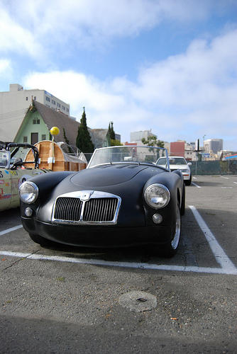 This is rather rare, but there is an occasional MGA painted Satin Black. Not my cup of tea, but some people may like to hide in the dark (or get lost in the fog). Now if they would just change all of the bright chrome to black chrome they may have something unique (and it could really hide in the dark.