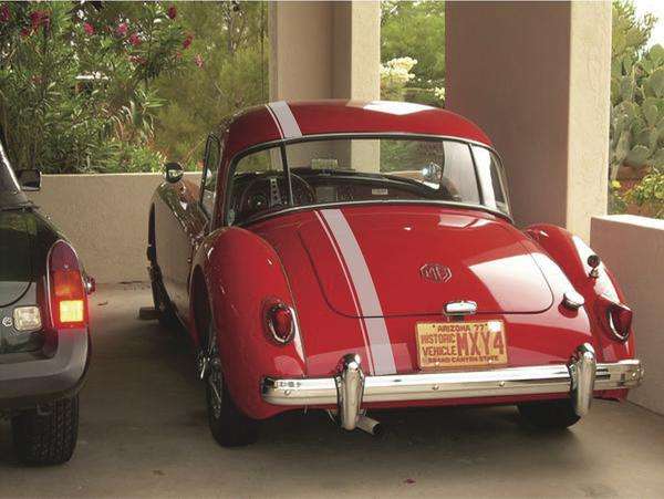 Bob Agar in Green Valley, Arizona, USA was contemplating adding some stripes to his MGA Coupe (above).