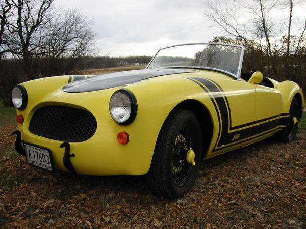 A serious cooling problem, and no budget for chrome? Looks hungry. I was almost convinced that an MGA could be yellow, but yellow accent brake drums and knock-off nuts rub me the wrong way. It will be trouble keeping paint on the KO nuts. The one-piece body can be a future service problem if it ever needs repair. I wonder how they ever assembled the front frame extension. Are those sea horses on the front irons?