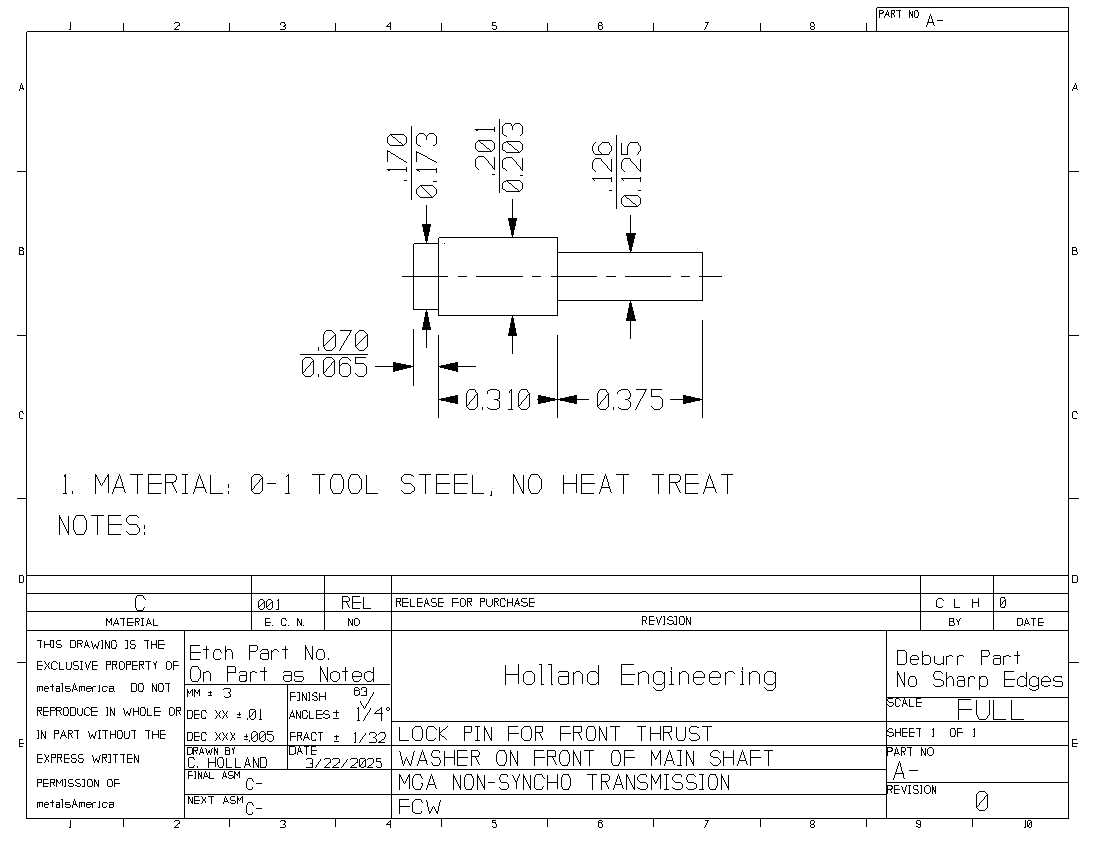 1G3268 15.F.3 Peg for thrust washer -front (3rd gear)
