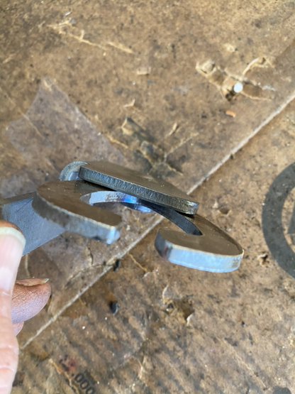 Notice in the first picture the rivet has been reset to be tight, and welded so it can't get loose.