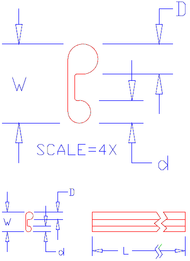 This grille piping is (originally) silver grey plastic, similar to the wing piping. It fits around the outer edge of the MGA grille surround between the grille and the painted car body. The smaller "d" bead fits inside hidden behind the grille surround. The larger "D" bead fits outside around the perimeter of the grille surround, so "D" it is the only part of the piping you see after assembly.