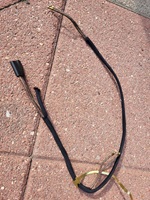 All four wires start together flush at the input end. A few inches along they branch out, two short wires in one branch, two long wires in the other branch. All four wire ends have bullet connectors. The horn harness will be attached to the frame with two rubber straps, AHH5506. The horn harness cover should be same as the main harness, black with yellow tracer threads.