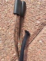 Pictures below, right to left: (2X) twin tube snap connectors at input end. - First break-out of short wires at 11-inches.