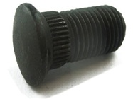 ThisATB4124 stud is smaller than you might expect, with 3/8-24-UNF thread and knurled neck under the head. It is pressed into the flange of the 1500 front wheel bearing hub for wire wheels. The only parts it holds are the thin face of the brake drum, a locktab, and a FNZ206 thin hex jam nut.