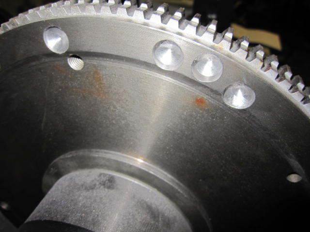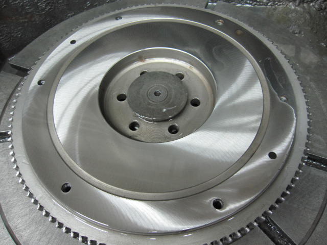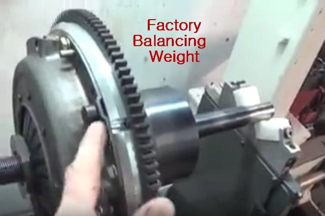 and maybe re-balanced any time it is machined for clean-up or weight reduction. It will be set up in a spin balancing machine to be run up to a speed of several hundred RPM to measure vibration. The machine then shows where to remove weight and how much weight is to be removed, which is usually done by drilling holes in a non-contact area near the rim of the flywheel.