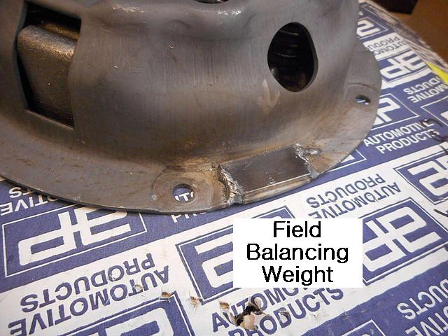This is done by adding weight to the outer extremities of the cover. The factory might use round weights to be riveted onto the edge of the cover. A service shop may later add weight by welding small weights to the edge of the cover.