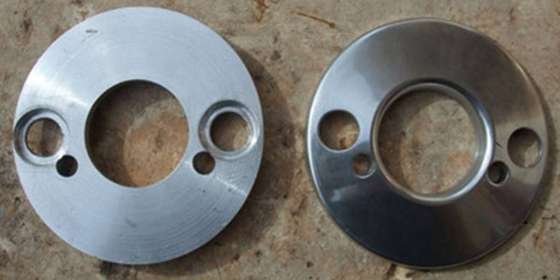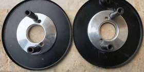 This is a similar set of stub stacks machined from Steve Styles preliminary design information, made by (or for) Frank Camilleri in Malta. Notice slightly thicker outer edges and larger counterbores for weld clearance.