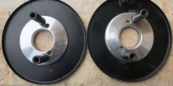 "I was so impressed with your fabrications that I made the nearest copy that I could. Not having a lath or the skills to go with it I made a negative mold from the dims you provided out of chipboard and a rotating arm with the cardboard stub stack profile. Filled with Polyfilla the arm rotates to give a passable negative mold for filling with glass reinforced epoxy filler. Sanded and sprayed black they are quite presentable and fitted to my car".