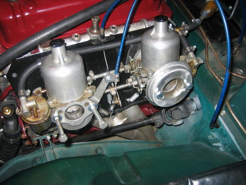 These pictures are MGB carburetors, but the MGB air guide piece can be installed on MGA carburetors as well, as shown on the previous page. And the plate in the first picture is upside down, need to turn that around, don't want to plug the vent holrd in the carburetor.