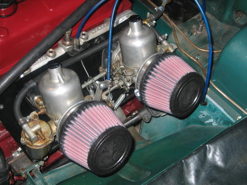 "I put on new K&N filters, which are very easy to install, as well as take off to clean. Pictures show that you use the stock velocity stack from MGB, and then just stick on over. These were ordered from Summit racing for about $25 a piece. Part No: KNN-RU-4410".