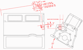 Some 3-main bearing blocks were not machined for the mechanical tach drive, but at least those did have material in the right place for more convenient machining. Machining dimensions are given below. Click for larger images.