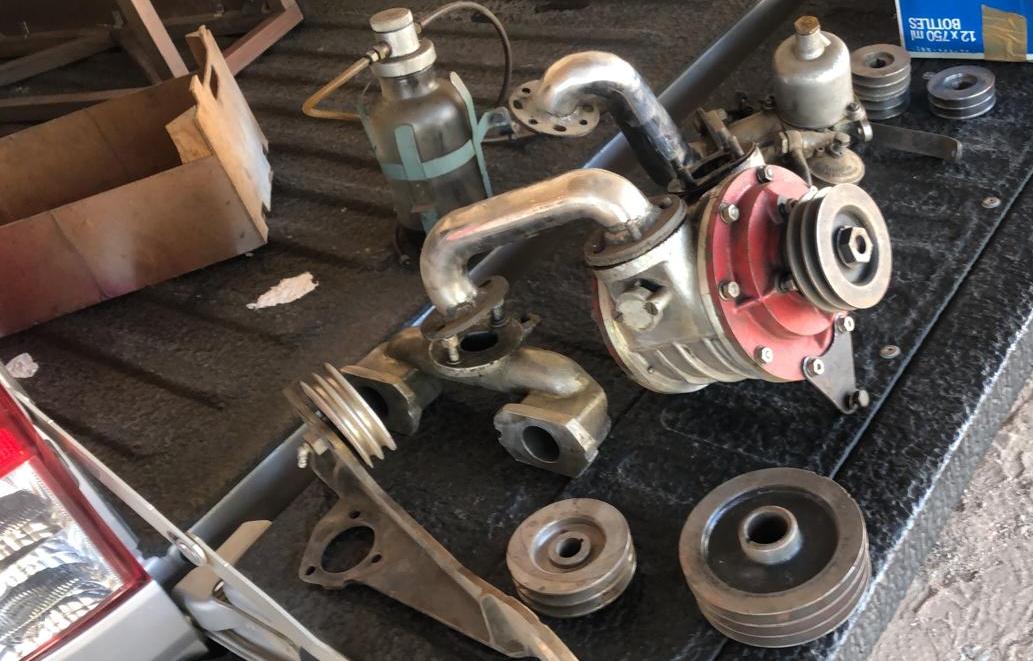 Here are pictures of a Arnott supercharger with installation parts to fit an MGA, found at a swap meet by Bruce Dixon in South Africa. This type was more often used on earlier MG MMM cars and T-types. so I was rather surprised to see an MGA kit for it. It would be interesting to know the pumping displacement and port sizes.