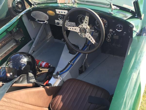 "This is an MGA with 6 cylinder twin cam engine! It has no heater shelf, detachable bonnet, open wheel arches, cold air scoop on the scuttle, etc".
