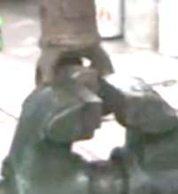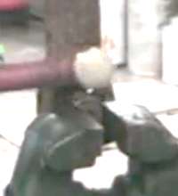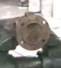 The first operation is to loosen the bearing caps and remove snap rings. Use the special tool to push hard (squeeze in vice) on one end of of a bearing cap. This will compress all the assembled parts together to leave a tiny bit of end clearance to make snap ring removal easy. Above left shows squeeze on the fixed axis cap. Above right shows squeeze on the free axis cap.