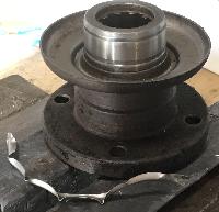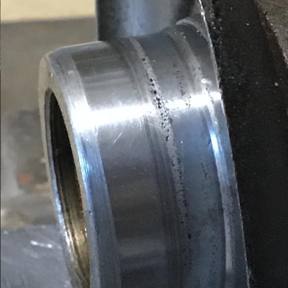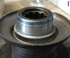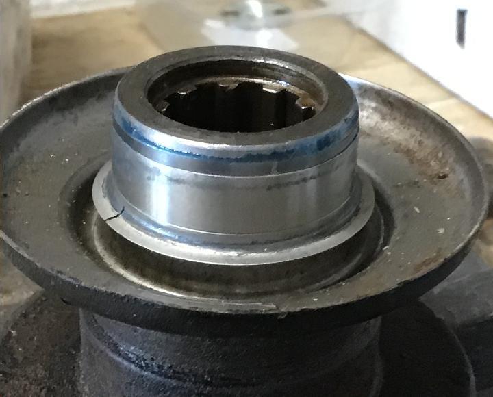 The first picture shows the input flange and pitted seal surface with close-up in the second picture. Speedi-sleeve 99150 is the remedy along with a new 88G320 oil seal.