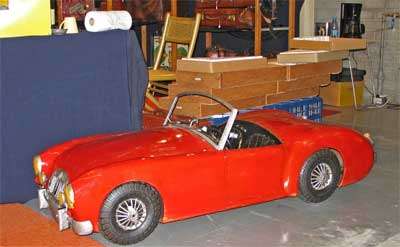 This hand-built special appeared at the Interclassics and Topmobiel classic car show in Maastricht, Netherlands, in 2006 (builder unknowh). It is larger than it looks in the photos (1/2 scale perhaps); compare it with the chair in the background. It looks large enough to carry two small children, and certainly enough internal space to hide a battery and electric motor (or pedals).