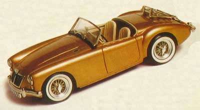 A gold MGA model made by Corgi to celebrate the 50th Anniversary of the MGA. Manufactured by: Vanguards.