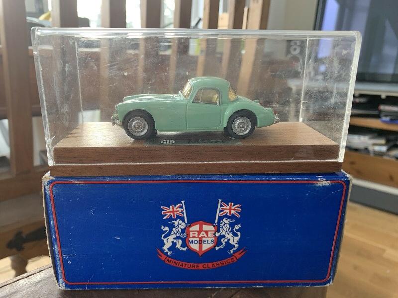 Another RAE model, this time an MGA 1600 Coupe in Tyrolite Green (with Twin Cam or "Deluxe" wheels). Unopened, original box, on eBay UK in February 2021.